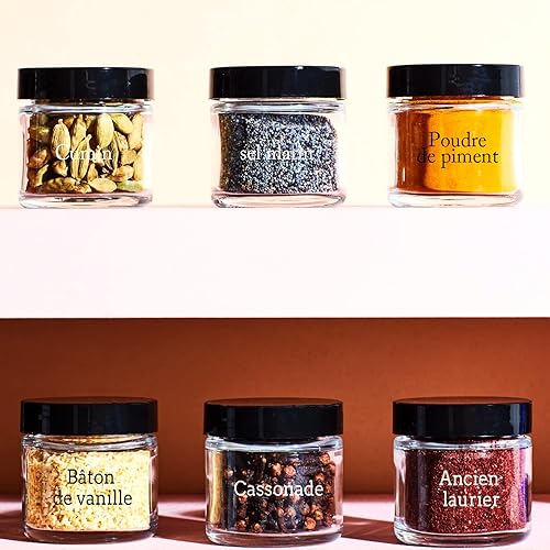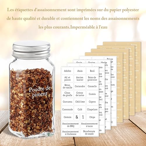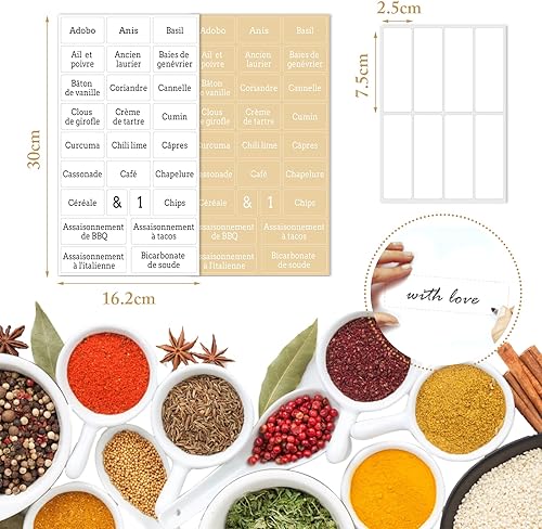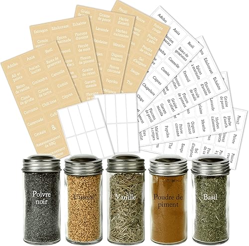VEGCOO 208 Pcs Étiquettes Épices Français Bocaux Autocollants Adhésives, Etiquette Epices pour Bocaux de Produits Alimentaires, Étiquettes Épices pour Cuisine Pots de Confiture Bouteille de Rangement
