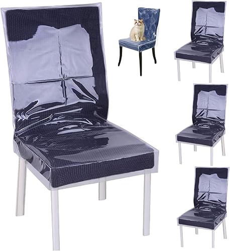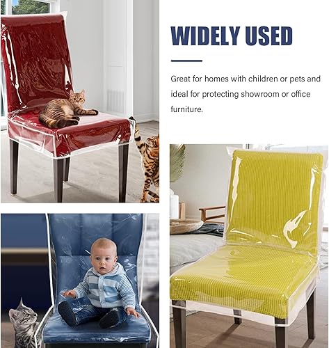 Lot de 4 housses de chaise en plastique 58 x 53 x 45 cm transparentes imperméables et anti-poussière pour salle à manger robustes pour la maison et le bureau
