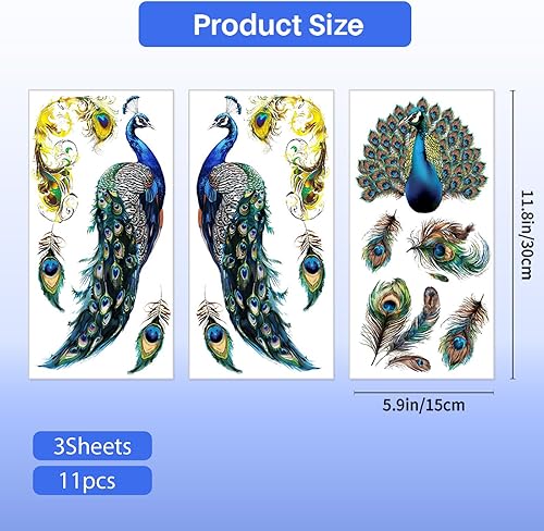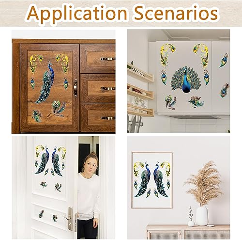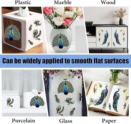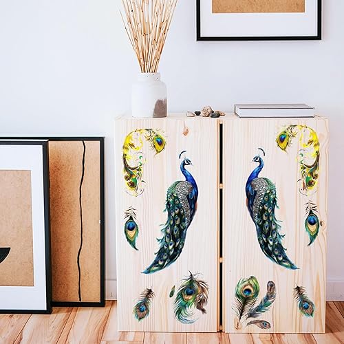 PLIGREAT 3 feuille de Transferts à Frotter Vintage pour L'Artisanat Autocollants de Transfert de Meubles de Paon Décalcomanies de Meubles en Plumes Dorées pour le Bois de Bricolage