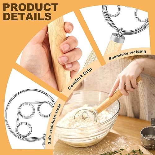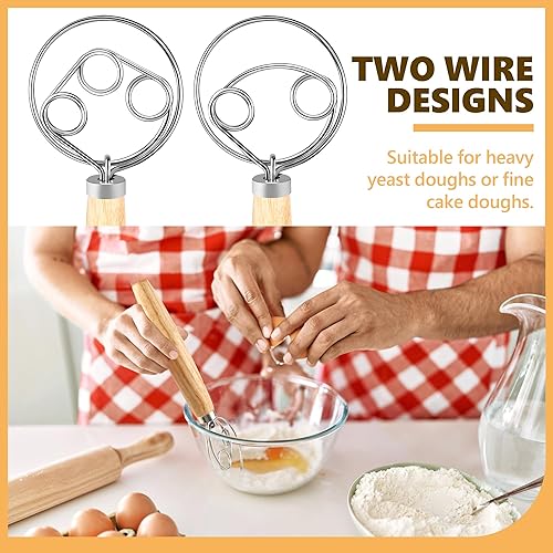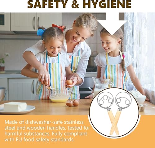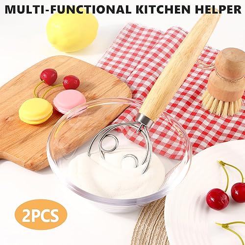 JSMTKJ Fouet Danois en Acier Inoxydable 2 Pièces - Manche en Bois Léger pour Pâtes Épaisse, Sauce, Pâtisserie et Préparations Crémeuses Facile à Nettoyer