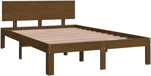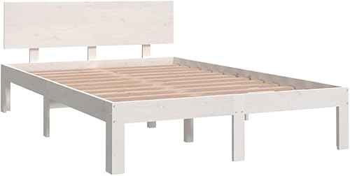 vidaXL Cadre de Lit Cadre à Lattes sur Pied Lit Adulte Sommier à Lattes Meuble de Chambre à Coucher Lit Double 140x190 cm Blanc Bois de Pin Massif