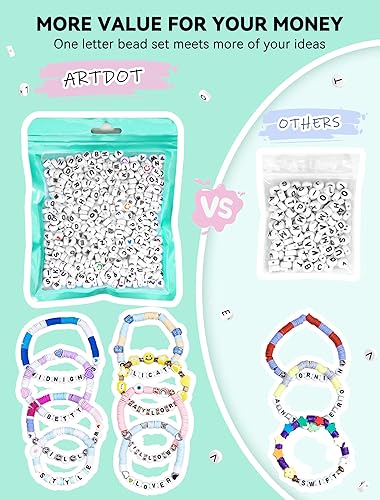 ARTDOT 800Pcs Perles Lettres Ronde, 7 x 4mm Acrylique Perles pour Bracelet Alphabet DIY la Fabrication de Bijoux, Friendship Bracelet Kit Colliers Enfants Fille DIY Cadeau