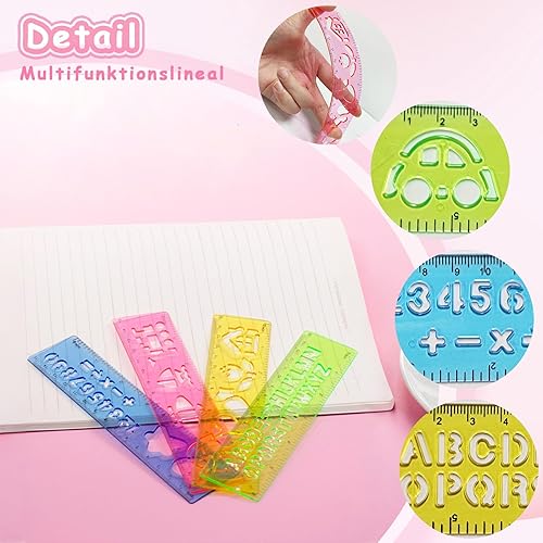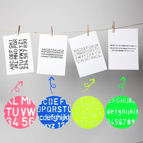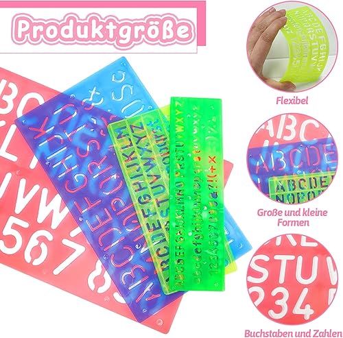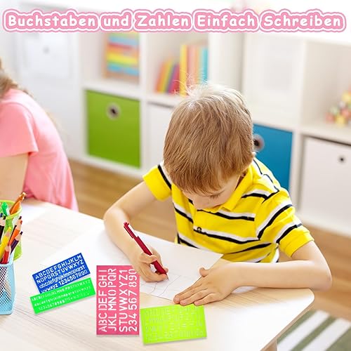 ZYNERY Lot de 8 pochoirs chiffres et lettres pour enfants - Règle de 15 cm avec lettres et chiffres - Pochoir en plastique pour aide au dessin et graffiti