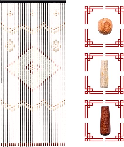 SHZICMY Rideau de porte en perles de bois - 31 brins - Rideau de perles en bois - Rideau de fils pour décoration de portes