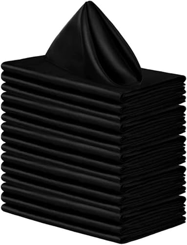 Cliettilw Lot de 16 serviettes carrées en satin de soie, nappes de table, nappes en tissu doux et lisse, pour mariage, , décoration de fête, noir