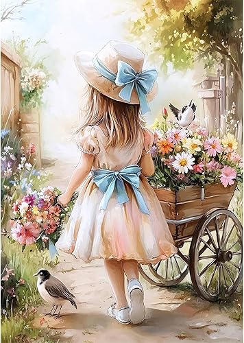 NEWENMO Bricolage Élégante Dame Diamond Painting Set,DIY Fleurs Peinture Diamant pour Adulte,5D Diamond Art Kits,Vintage Diamant Painting Kit Complet,pour Adulte Débutant Murale Décoration (30x40cm)