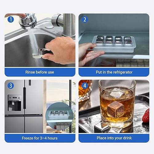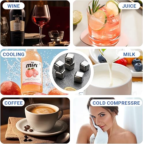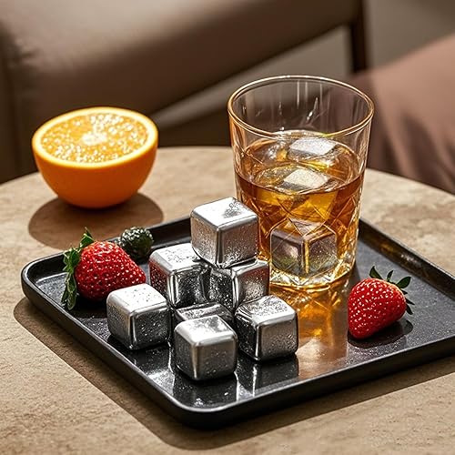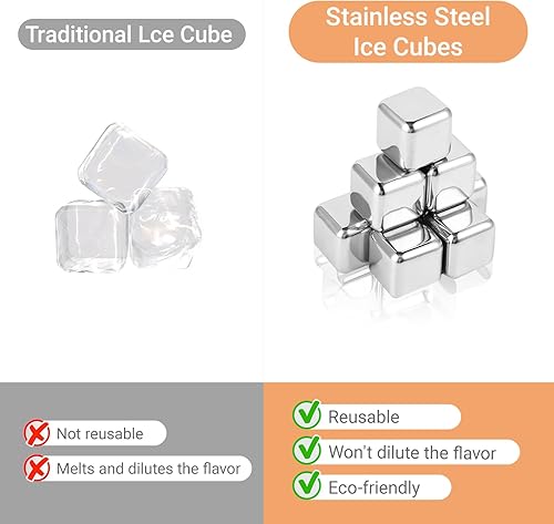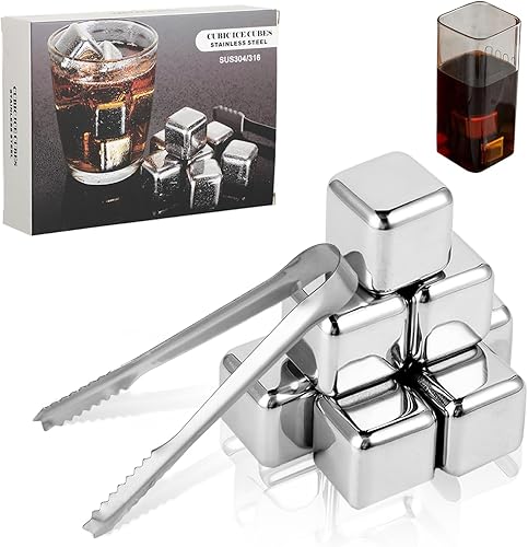 Glacon Reutilisable - 8 Pièces Glaçons Reutilisable Whisky Stones - Pierres à Whisky en Acier Inoxydable 304 Avec Pince - Parfait Pour Cocktails, Vins et Plus Encore
