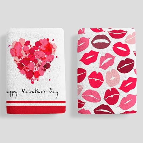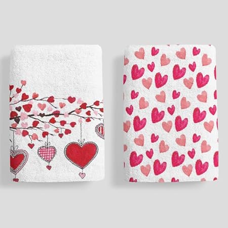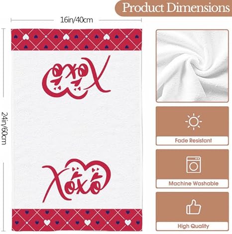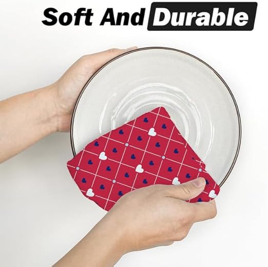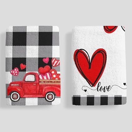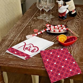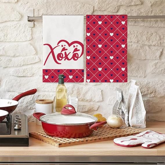 Horienteeon Lot de 2 torchons de cuisine à séchage rapide en microfibre de qualité supérieure pour la Saint-Valentin, motif cœur rouge, 60 x 40 cm