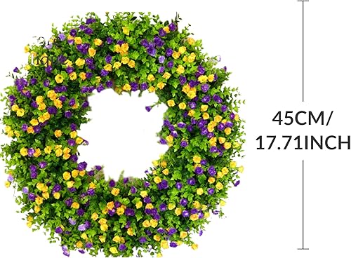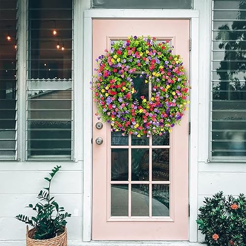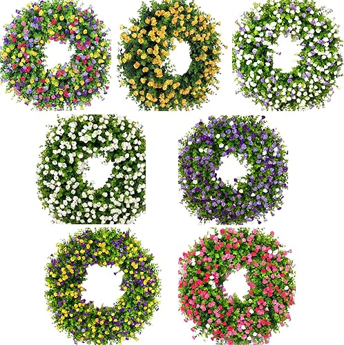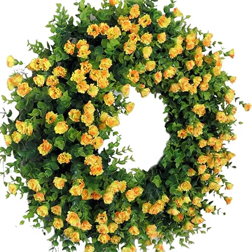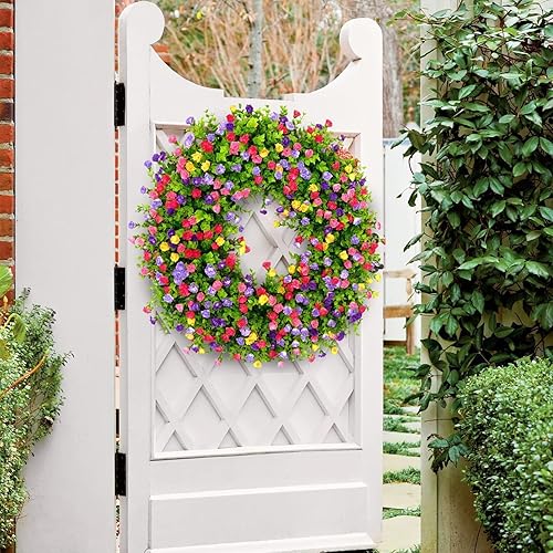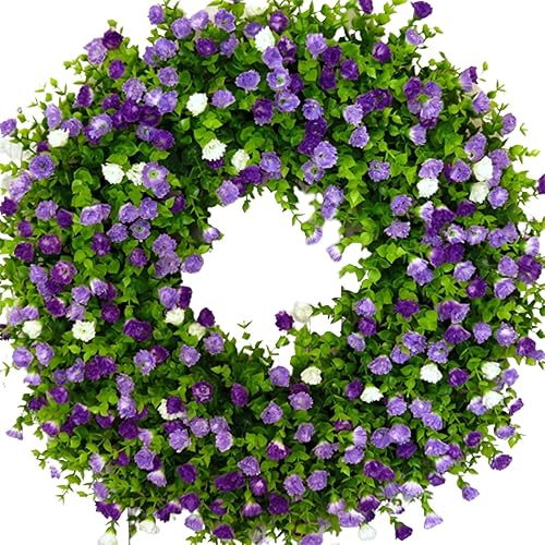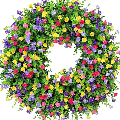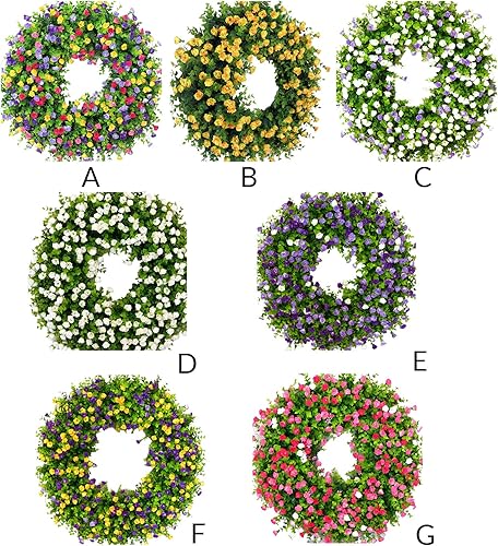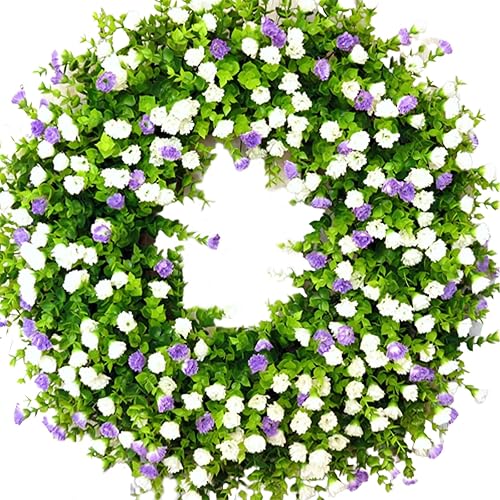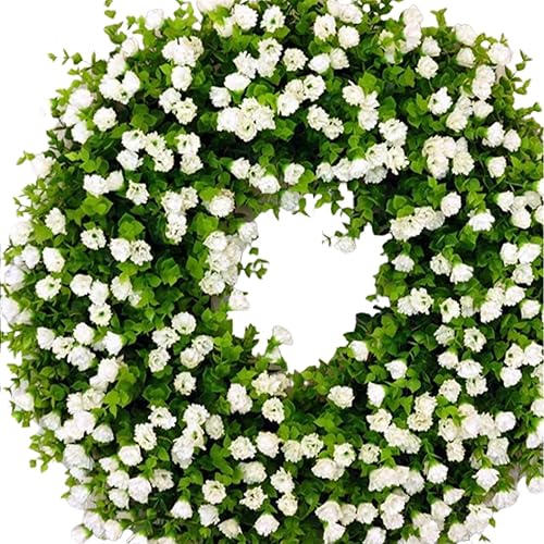 Couronnes de Printemps pour Porte D'entrée, Couronne de Fleurs Sauvages Artificielles, Couronne D'eucalyptus Colorée, Couronne de Fleurs D'été, Couronne de Porte à Ressort avec Feuilles(Blanc)