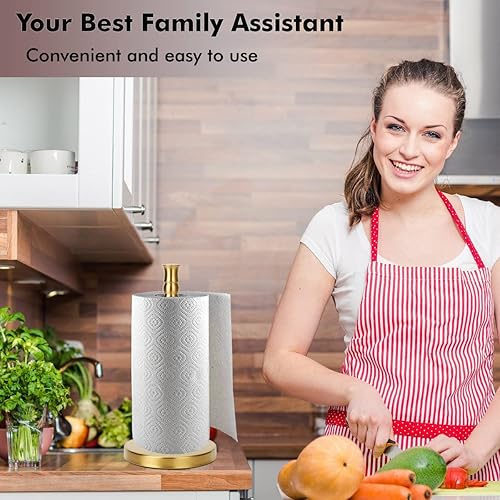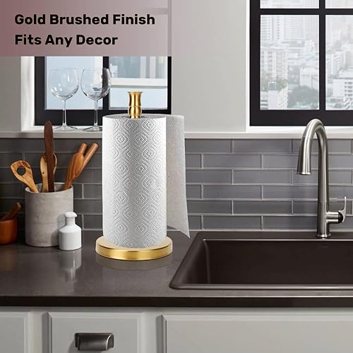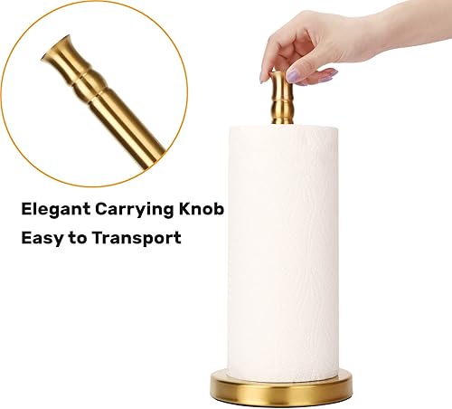 Support de Papier essuie-Tout avec Base lestée en Acier Inoxydable Lourd, Porte-Serviettes en Papier sur Pied (doré brossé)