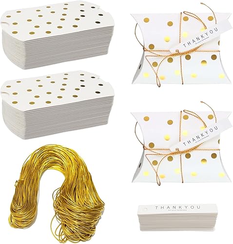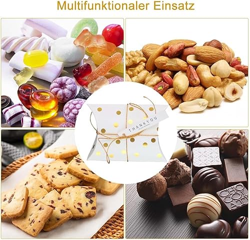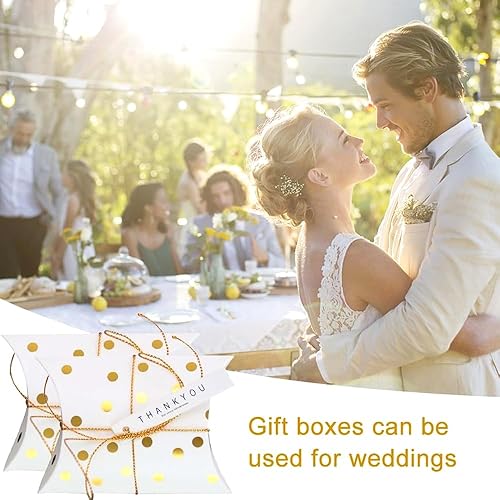 Zfseyuh Petite Boîtes à Dragées, 50 Pièces Boîtes de Bonbons de Forme D'oreiller avec Corde, Vintage Contenant Cadeau en Papier pour Baptême Mariage Communion Noël