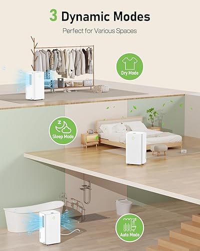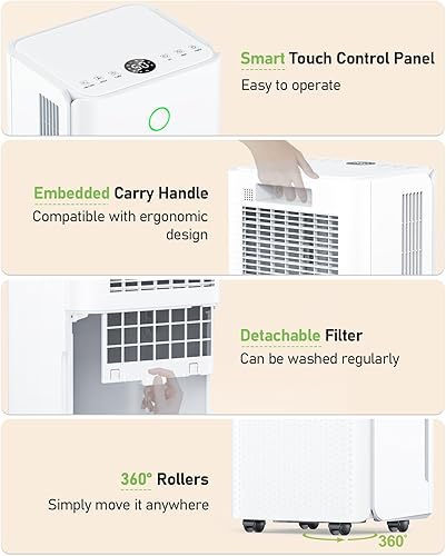 Deshumidificateur d Air Electrique, Absorbe Jusqu'à 12L/Jour, Déshumidificateur Compacte avec Roulettes et Poignée, 3 Modes Réservoir 2,2L, Drainage Automatique, Minuterie 24H, Pour pièce de 20-35㎡