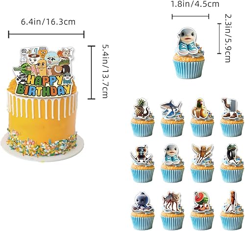 Brainrot Animaux Décoration de fête d'anniversaire – Tung Tung Sahur Décorations à thème, bannière, ballon, cupcake, fournitures de fête