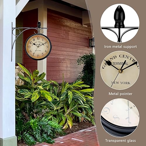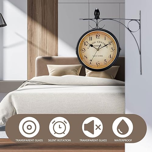 Horloge de Gare Rétro Double Face, Horloge Murale étanche, Antique Horloge Murale de Gare avec Potence de Fixation Pendule Double Face pour L’intérieur et L’extérieur Maison Terrasse Jardin 33x31 cm
