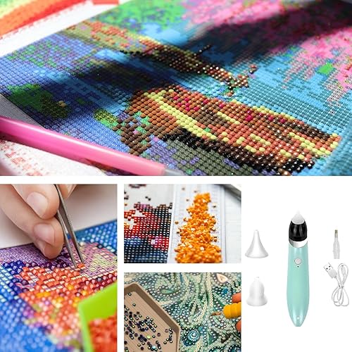 Stylo de peinture en diamant électrique avec pompe à vide, outils de stylos à stylos en diamant rechargeables, outils d'accessoires d'art en diamant avec 3 mode d'aspiration réglable, trousse d'outils