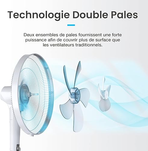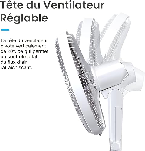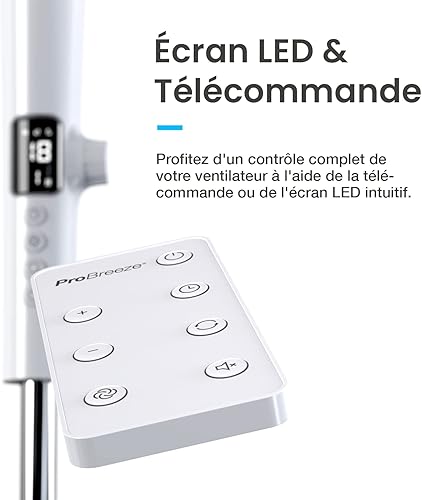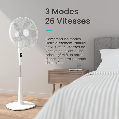 Pro Breeze Ventilateur sur pied Silencieux & Programmable, 26 Vitesses, 3 Modes de Fonctionnement, Ventilateur Oscillant 90°, Hauteur Réglable, Diamètre de 40 cm, Télécommande - Blanc