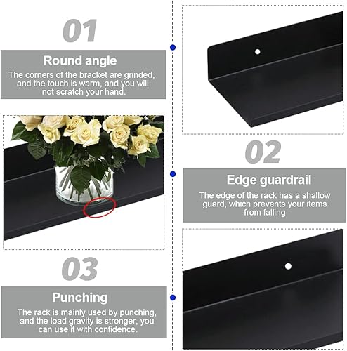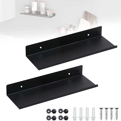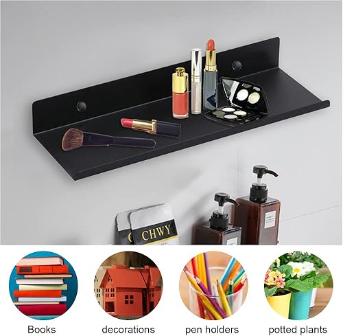 JUNMEIDO Tablettes Flottantes en Space Aluminum 29.5*11.5*4cm Étagères Carrées Anti-corrosion Petite Étagere Murale Anti-oxidation Anti-scratch pour Salon Chambre Couloir Salle de Bain Cuisine - Noir