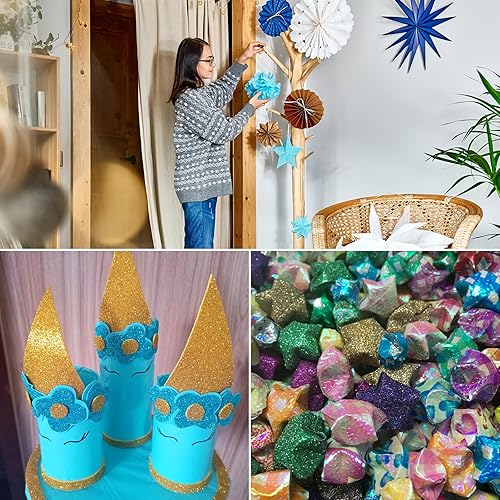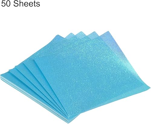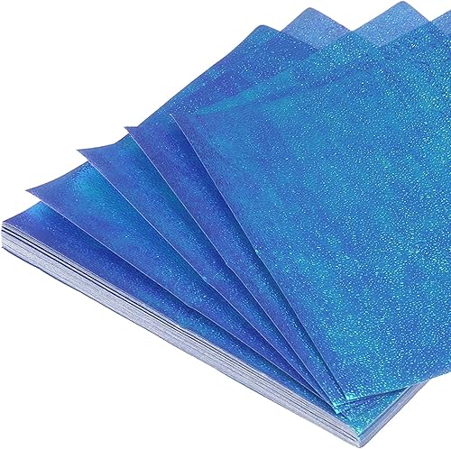 QUARKZMAN 50 Feuilles de Papier Origami Pailleté 15x15 cm Brillant Carré Pliant 6x6 Pouces Papier Iridescent pour Art DIY, Décoration Artisanale, Bleu