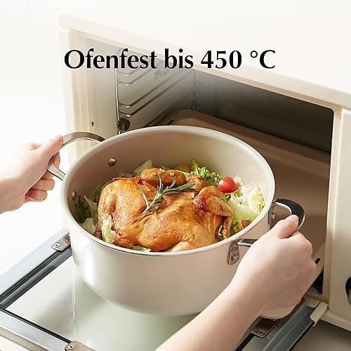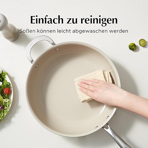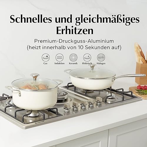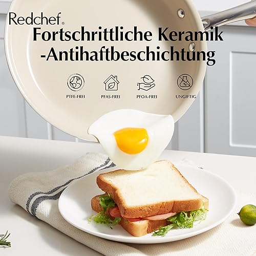 Redchef Lot de 14 poêles en céramique avec couvercle, revêtement anti-adhésif, avec poignée en acier inoxydable, sans PTFE, sans PFOA, passent au four, passent au lave-vaisselle