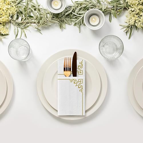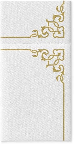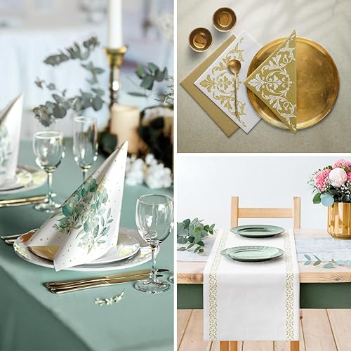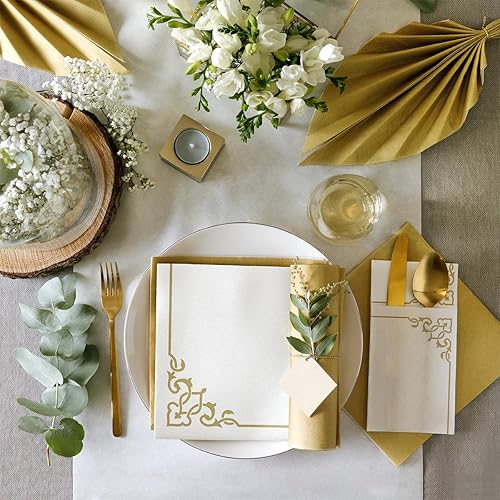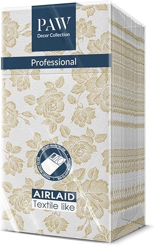 PAW Serviettes en Papier Airlaid. 40 x 40cm. Pliable 1/8 -25 pièces HoReCa. Décoration de Table. Texture de tissu classique, dorée et rose. La décoration de table parfaite pour les grandes occasions.