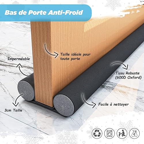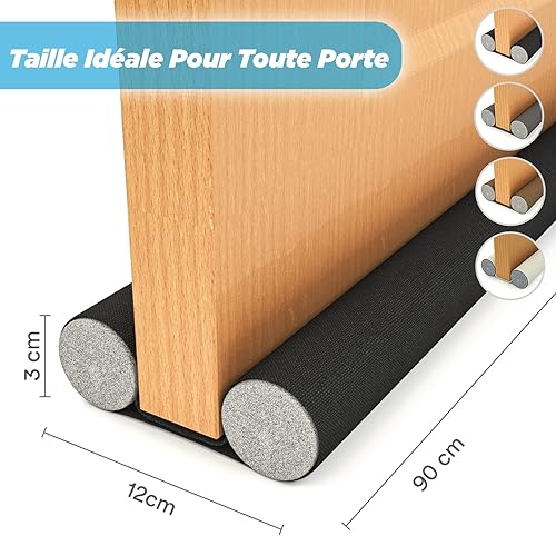 AYACO Boudin de Porte Isolant – 90 cm Double Bas de Porte Isolant | Coupe-Froid Ajustable Boudin Porte Isolation pour Dessous de Porte Intérieur et Extérieur | Protection Contre Les Courants d’air