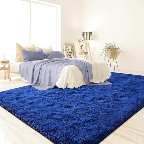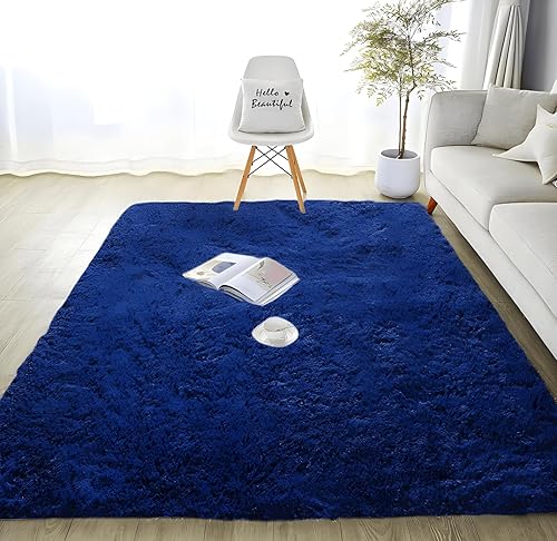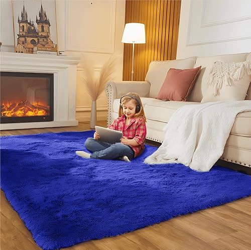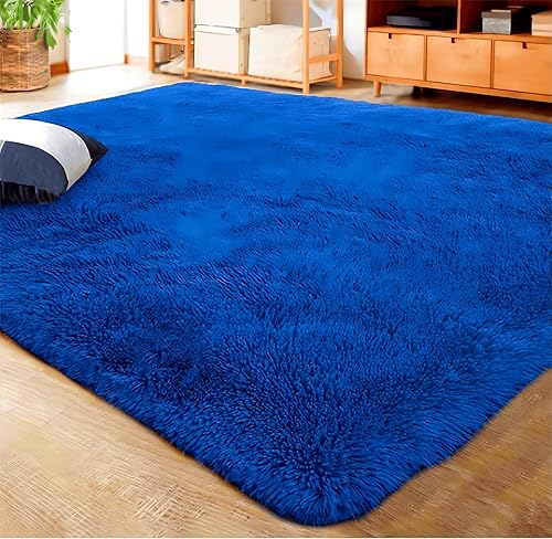 SUBEEN Tapis Salon, Tapis Chambre Tapis de Salon Moderne Tapis Shaggy Grand Tapis Antidérapant pour Salon Chambre Enfants (Bleu, 80x120cm)