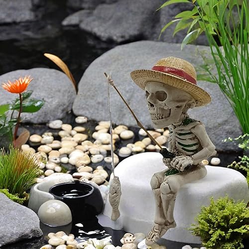 ACAREY Mini décoration de squelette d'Halloween pour jardin, étang de jardin, fontaine, piscine, figurines gothiques d'Halloween, résine (A)
