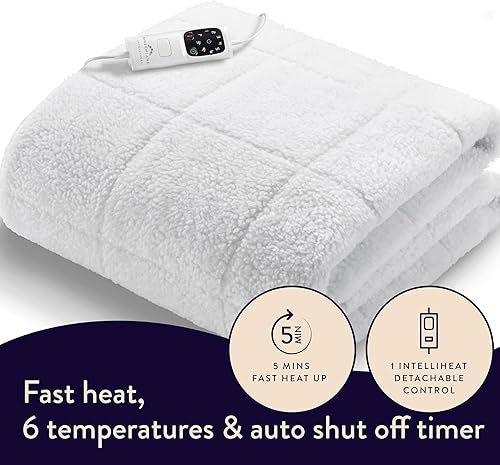 Dreamland Scandi Sur-matelas chauffant électrique en sherpa pour lit simple - Technologie chauffante très rapide Intelliheat+ - Télécommande - 6 réglages de température et minuterie - 190 x 90 cm