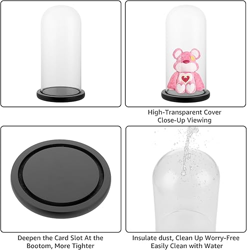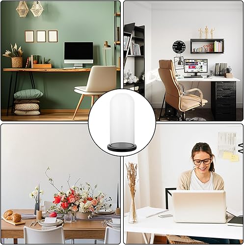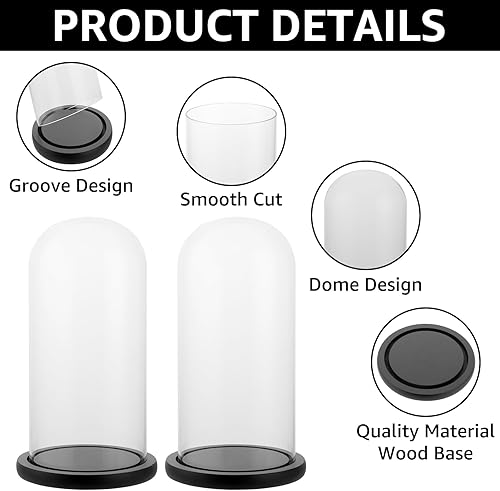 APACALI 2PCS Cloche en Verre avec Fond en Bois, Cloche décorative de 25 cm, Cloche en Verre Transparent, Cloche en Verre avec Fond pour lumières, décoration, Accessoires d'intérieur