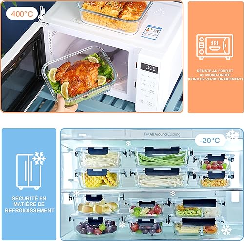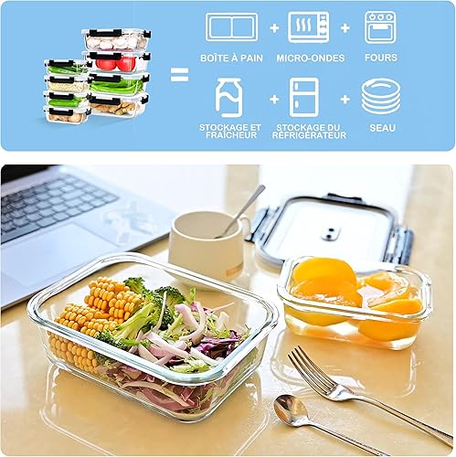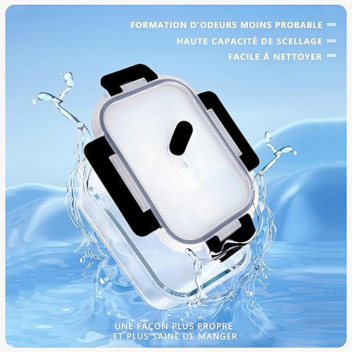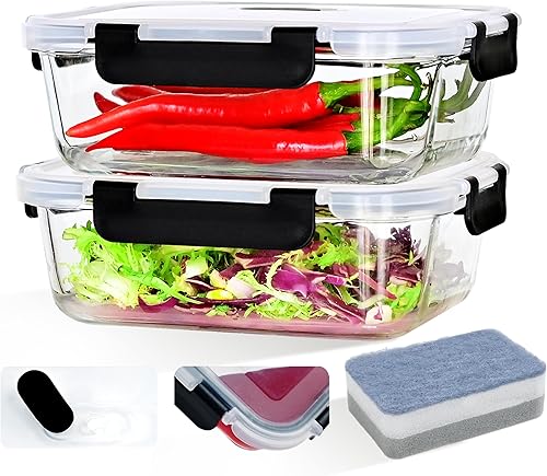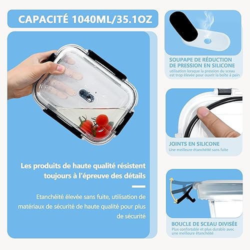 LNWSN Lot de 2 boîtes de conservation en verre avec couvercle, réutilisables, hermétiques, anti-fuite, pour cuisine et restaurant, 1040 ml, sans BPA