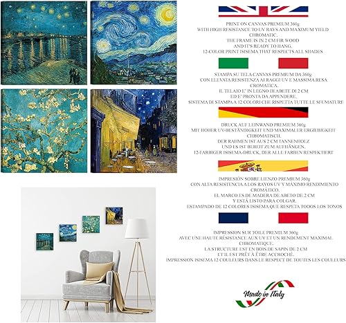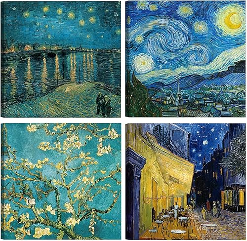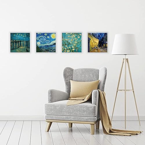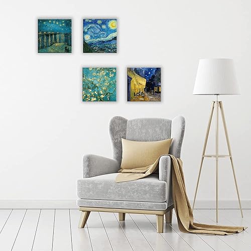 DìMò ART - Lot de 4 impressions sur toile de tableaux modernes de Vincent Van Gogh, art classique, décoration pour cuisine, chambre à coucher, salon, bar, bureau, restaurant, 30 x 30 cm