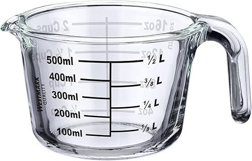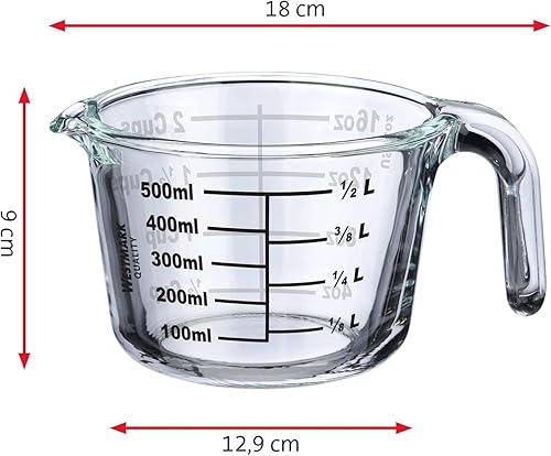 Westmark Verseuse graduée, volume de remplissage 0,5 l, passe au four, au micro-ondes, au congélateur, verre borosilicate, transparent/noir, 30622260