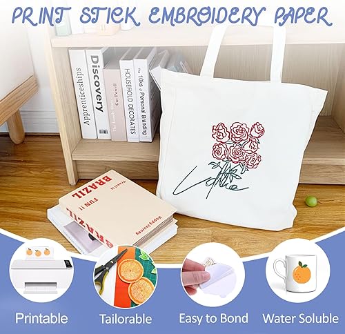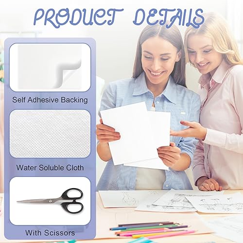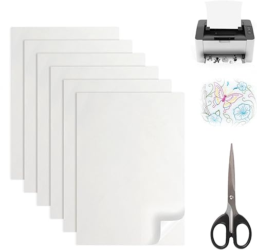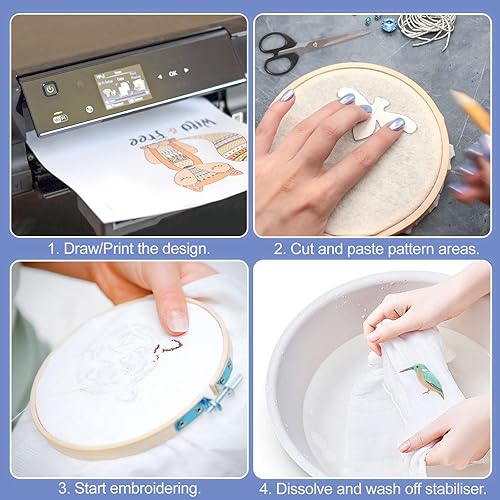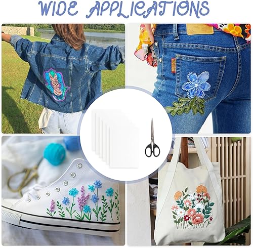 6 Feuilles Papier à Broder Imprimable, Papier à Broder pour Couture à la Main, Feuille de Papier à Broder Soluble avec Ciseaux, Stabilisateur de Broderie Soluble dans L'eau pour Réparation de Vêtement