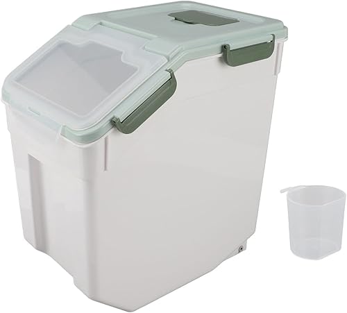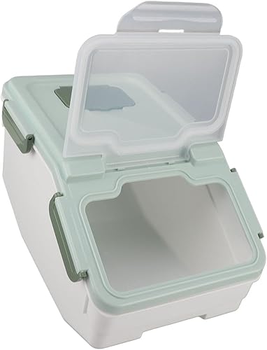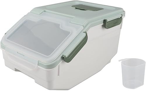 Asixxsix Récipient à Riz Hermétique, Bac en PP épaissi Studry pour Grains de Farine de Riz, Couvercle Facile à Ouvrir et à Fermer, Vert Menthe avec Tasse à Mesurer (10 kg / 22 Livres)
