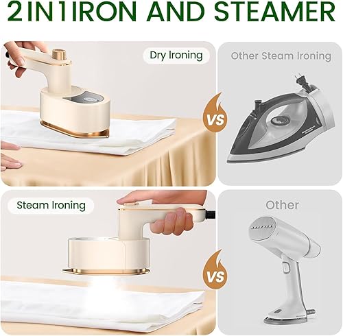 Défroisseur Vapeur, Mini Fer a Repasser Vapeur, 2 en 1 Portable Fer à Vapeur de Voyage, 180° Degrés Pliable Fer à Vapeur, Rapide 30S, Vapeur Fer à Main avec humide et sec pour la Maison et Les Voyages