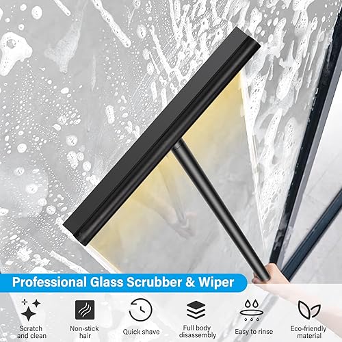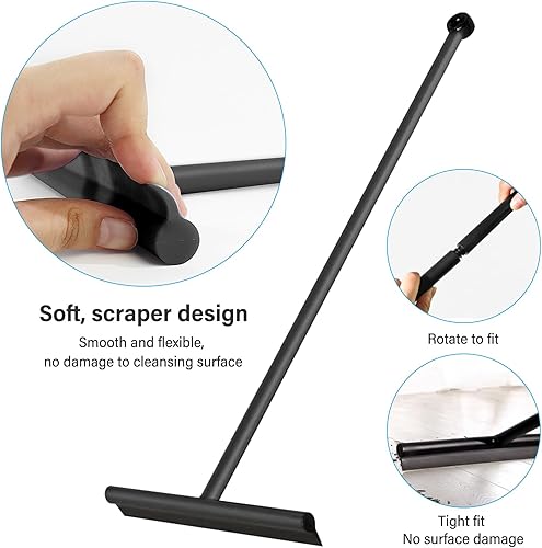 Raclette de Douche en Trois étapes Longueur Variable Raclette Salle de Bain Raclette Vitre Acier Inoxydable avec Microfibres et Support Ventouse Nettoyage sans Traces pour Salle de Bain et Fenêtres
