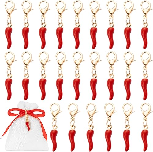 24pcs Porte-clés Cornes Rouges Porte Clefs de Voiture Moto Sac Port Bonheur Accessoire Cadeau pour Fête Anniversaire Diplômé