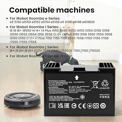 Vacuum Cleaner Batterie pour iRobot j7 i4 j8+, pour Combo j5 i5 j7+ j9+,j7 j7+ j7550 i4 i4+ i4 Plus i4150 i6 i6+ i8 i8+ i8550,pour e5 e6 e5150 e5152 e6198, Replacement for ABL-D2A ABL-D2