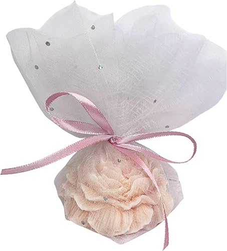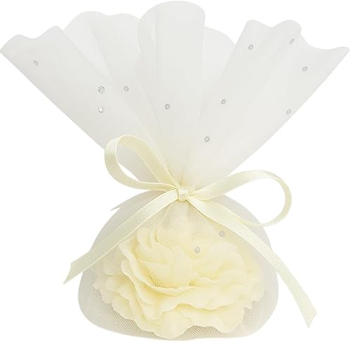12 Bougies Fleurs crème en Cire de Colza + 12 Tulles Voile + Ruban Cadeaux Invités | | Souvenirs et Décoration Événementielle Mariage, Baptême, Anniversaire | Sculpturales & Élégantes