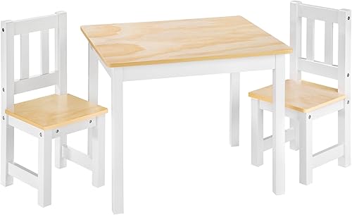 TecTake 402376 Ensemble Table et 2 Chaises en Bois | Naturel Blanc