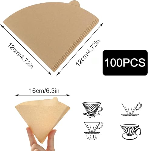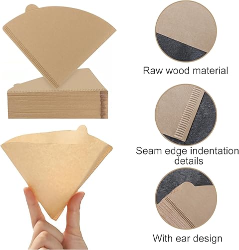 NXPUXP 100 Pièces Filtres à Café en Papier,Forme en V Filtre à Café,Filtres à Café non Blanchi,Filtre à café V60,Pour Machines à Café Filtre(couleurs primaires)