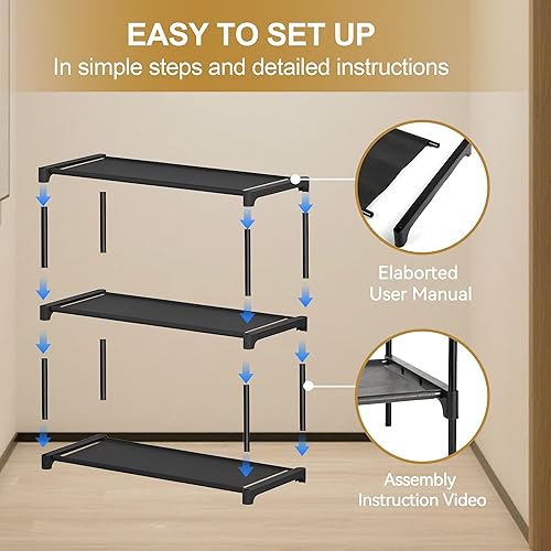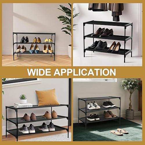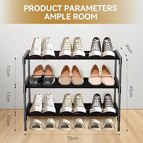LINKINNO [3 Niveaux] Étagère à Chaussures, Empilable Rangement de Chaussures pour Entrée, Salon, Chambre, Dressing, Couloir (70 x 30 x 45 cm, Noir)