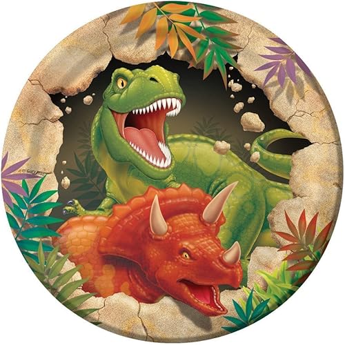 BIGIEMME Assiettes Rondes pour fêtes d'anniversaire ou à thème. Dinosaures, Ø 18 cm