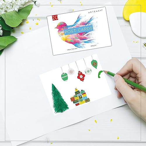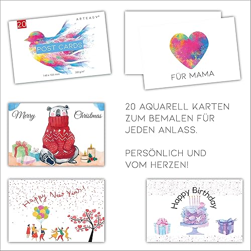 Arteasy® Lot de 20 cartes postales aquarelles au format A6 à personnaliser soi-même – Papier aquarelle de 300 g pour dessiner et peindre à l'eau – Cartes vierges