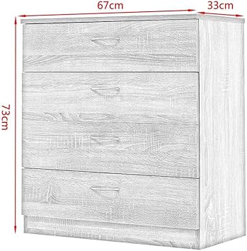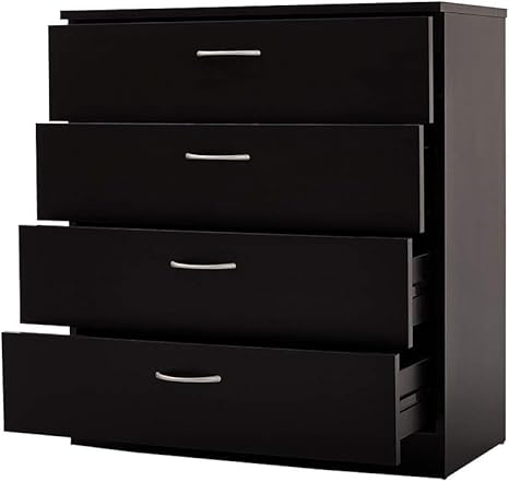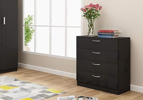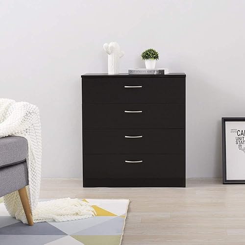 Panana Commode Blanche Mat avec 4 tiroirs, Meuble Rangement, Commode Chambre, Commode avec tiroirs, Armoire à tiroirs, Taille: 67 x 33 x 73 cm, Poids: 23 kg (Noir, 4 tiroirs)