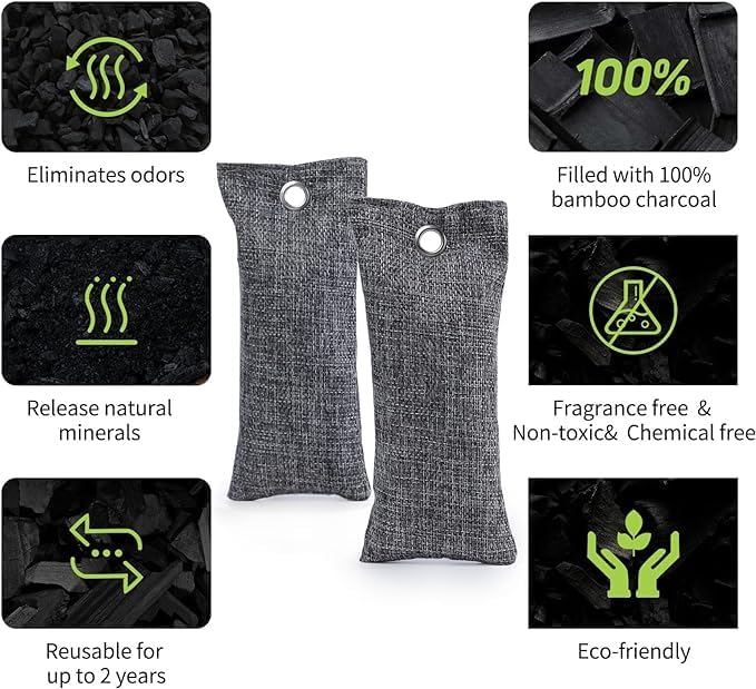 NATRUTH Sac Désodorisant, Charbon Actif de Bambou, Absorbeur d‘Odeurs et d‘Humidité, Déodorant Chaussures, Éliminateurs d'Odeur Pour La Maison, 6-Pack (2 * 200g + 4 * 75g) Pessimiste