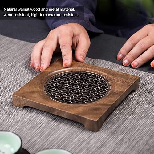 sous-Verre en Bois pour La Cuisine, Dessous De Plat Carré en Noyer pour Théière Accessoires De Thé sous-Verre Isolation Thermique sous-Verre Résistant À La Chaleur pour Plats Chauds Théière