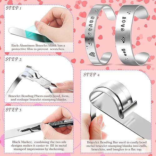 Kit D'Estampage en MéTal de 19 PièCes Vierge avec Pince à Plier Le Bracelet 2 Tailles pour la Fabrication de à Bricoler Soi-MêMe Cadeau Saint Valentin
