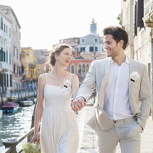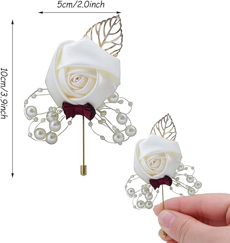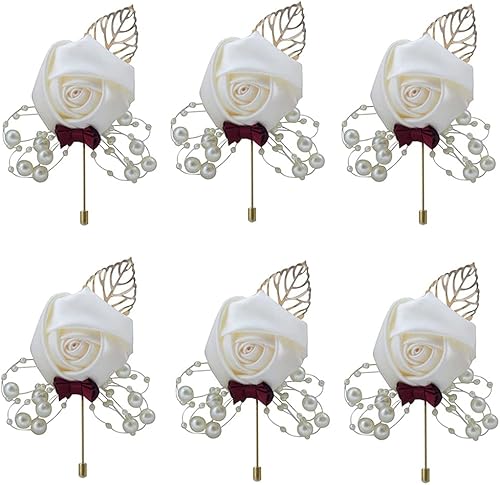 6 Pièce Boutonnière de Mariage, Blanc Boutonniere, Boutonnière Mariage Homme, pour La Mariée, Le Marié, La Demoiselle d'honneur Et Les Invités Présents