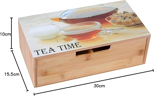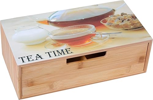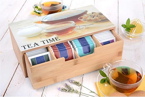 GRÄWE Boîte à thé en bambou avec 6 compartiments, couvercle rabattable, fenêtre transparente, boîte à sachets de thé pour conserver les arômes - 21 x 16 x 7,5 cm